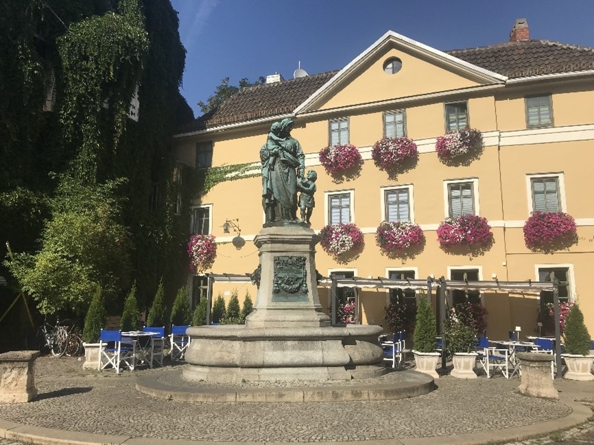 Interessanterweise kann man eine ähnliche Muttergruppe aus Donndorfs Werk in New York am Union Square im sogenannten „James-Brunnen“ bewundern. Dieser Brunnen wurde auf Bestellung von James, einem bekannten amerikanischen Philanthropen2, von Donndorf geschaffen und stellt die erste Ausführung dieser Muttergruppe dar.